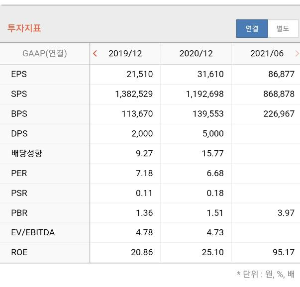 2021년 상반기 기준 EPS와 주가로 볼 때
